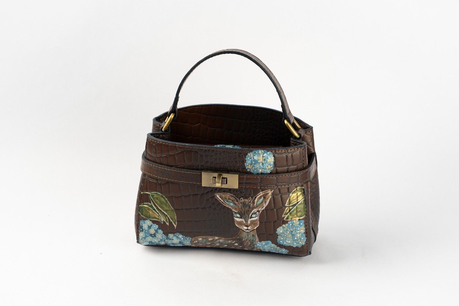 * Hand-Painting: Deer with turqouise flowers